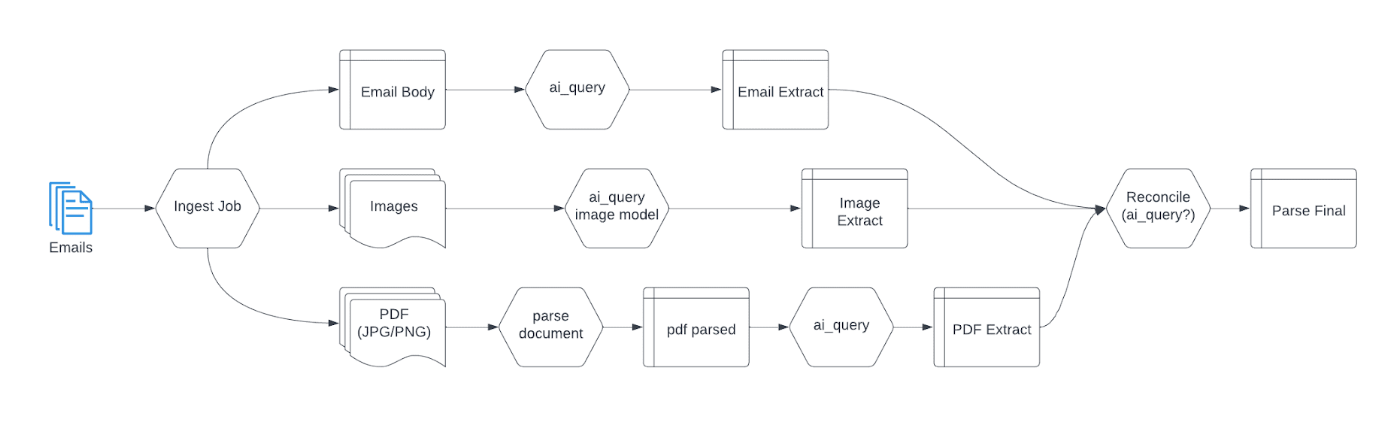 With Agent Bricks and Lakeflow, data engineers can use ai_parse_document and ai_query to automatically extract, normalize, and consolidate data from incoming emails as part of their ETL pipelines. This enables reliable, end-to-end automation that reduces manual review, accelerates decisions, and integrates seamlessly into existing data workflows.