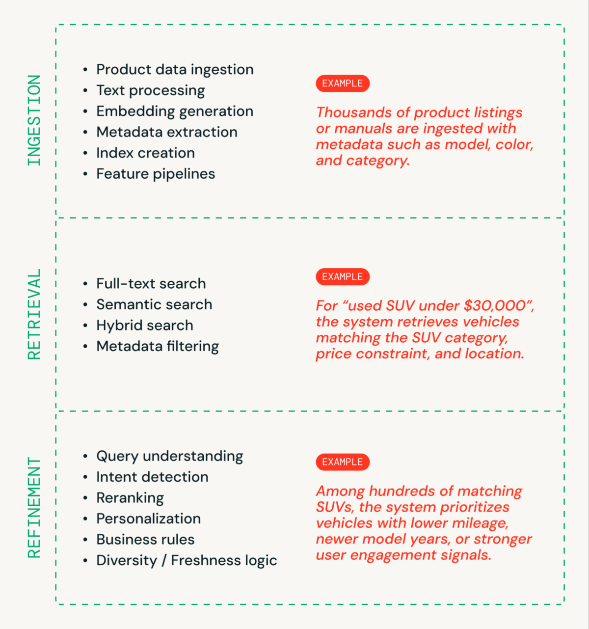 Imagine you're designing a search system for an online marketplace selling cars. In milliseconds, users expect results that fit their budget, match their preferences, are available near them, and feel relevant.