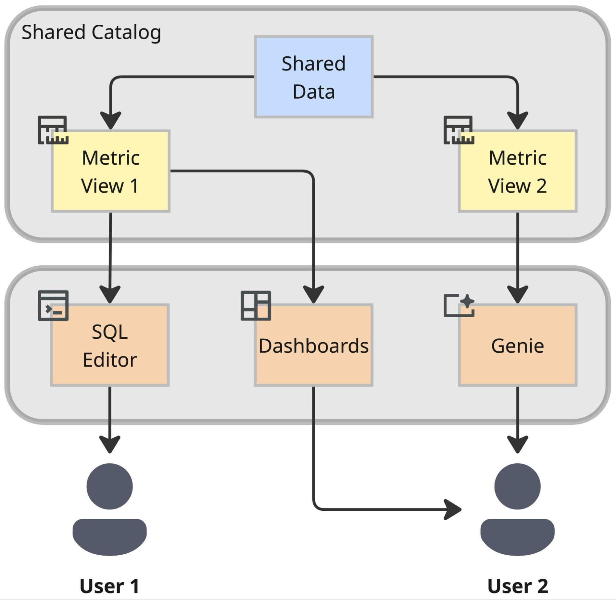 This setup is crucial for our scale. By enforcing that Metric Views are built on top of the trusted data in our Shared Catalog (from Section 1), we ensure that the semantic layer inherits all the security and compliance benefits of the underlying platform. A user querying a metric view is still subject to the same row-level and column-level security, and access rules we defined in the Unity Catalog layer. We will also enhance this setup later this year with an additional authorization layer via the Metric Views, so that users no longer need raw data access, but only metric and dimension level access.