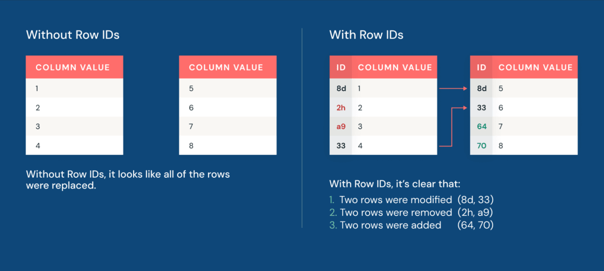 Now, row lineage allows teams to quickly identify which rows changed. Every row in an Iceberg v3 table carries a permanent row ID and a sequence number reflecting when the row was last modified.