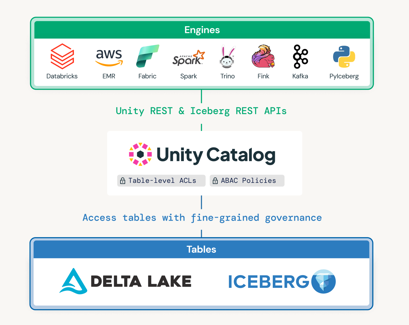 • Unity Catalog is the central hub of your Iceberg ecosystem - no matter which engines or catalogs your team uses, every tool reads the same data with consistent, fine-grained governance
