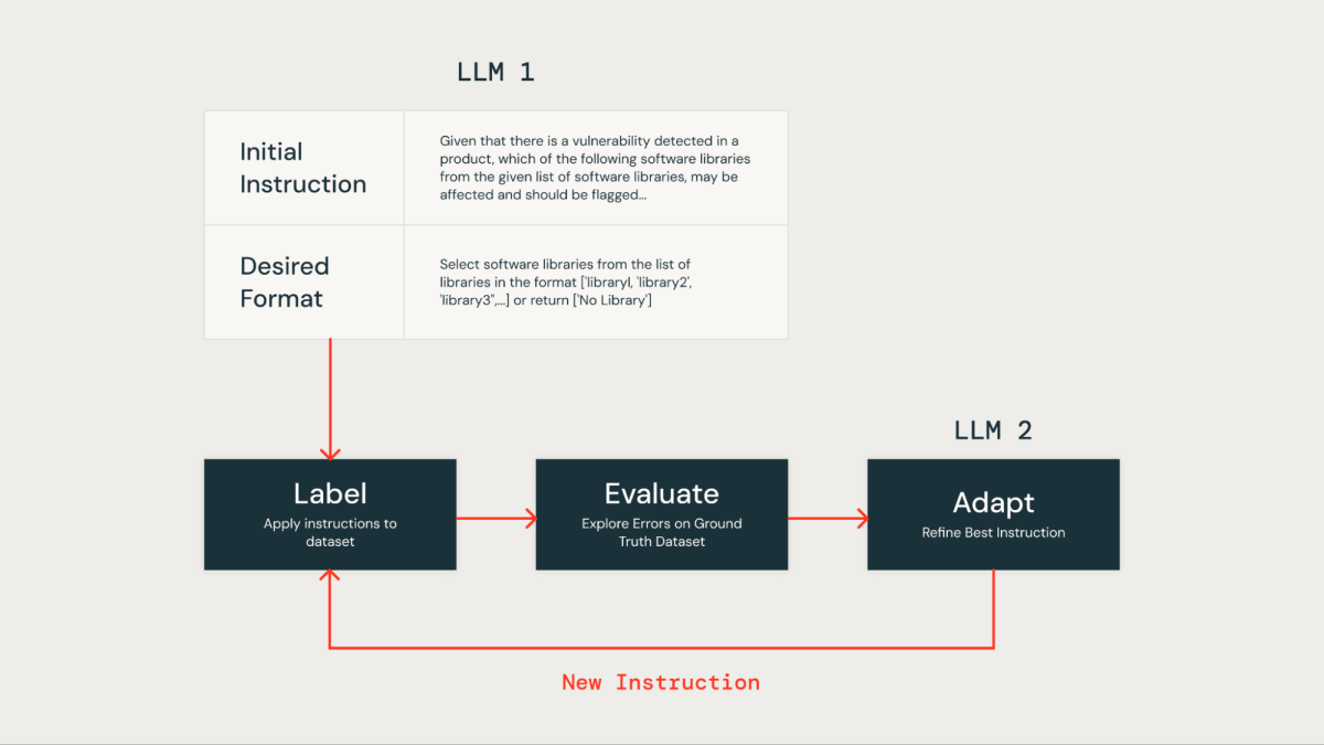 Aplicamos esta técnica de otimização de instrução automatizada para melhorar nossa própria solução baseada em LLM. Inicialmente, fornecemos uma instrução e o formato de saída desejado para o LLM para rotulação do conjunto de dados. Os resultados foram então comparados com um conjunto de dados de verdade básica, que continha dados rotulados por humanos fornecidos pela nossa equipe de segurança do produto.