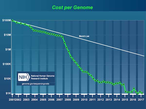 Seit dem Abschluss des Humangenomprojekts im Jahr 2003 gab es eine Datenexplosion, die durch einen drastischen Preisverfall bei der DNA-Sequenzierung befeuert wurde: von 3 Mrd. $1 für das erste Genom auf heute unter 1.000 $.