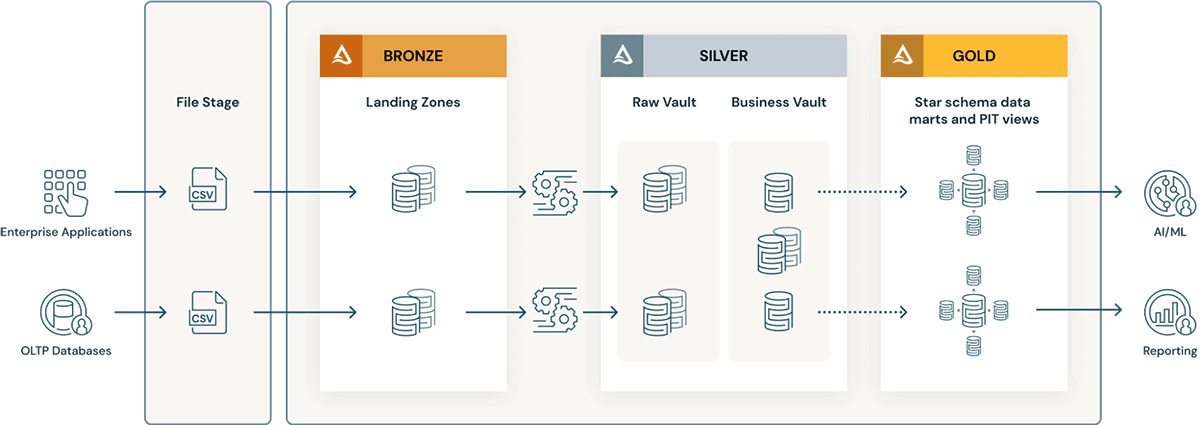 In einem früheren Artikel haben wir Fünf einfache Schritte zur Implementierung eines Sternschemas in Databricks mit Delta Lake behandelt. In diesem Artikel erklären wir, was ein Data Vault ist, wie er in der Bronze-, Silber- und Gold-Schicht implementiert wird und wie Sie mit der Databricks Lakehouse Platform die beste Performance des Data Vaults erzielen.