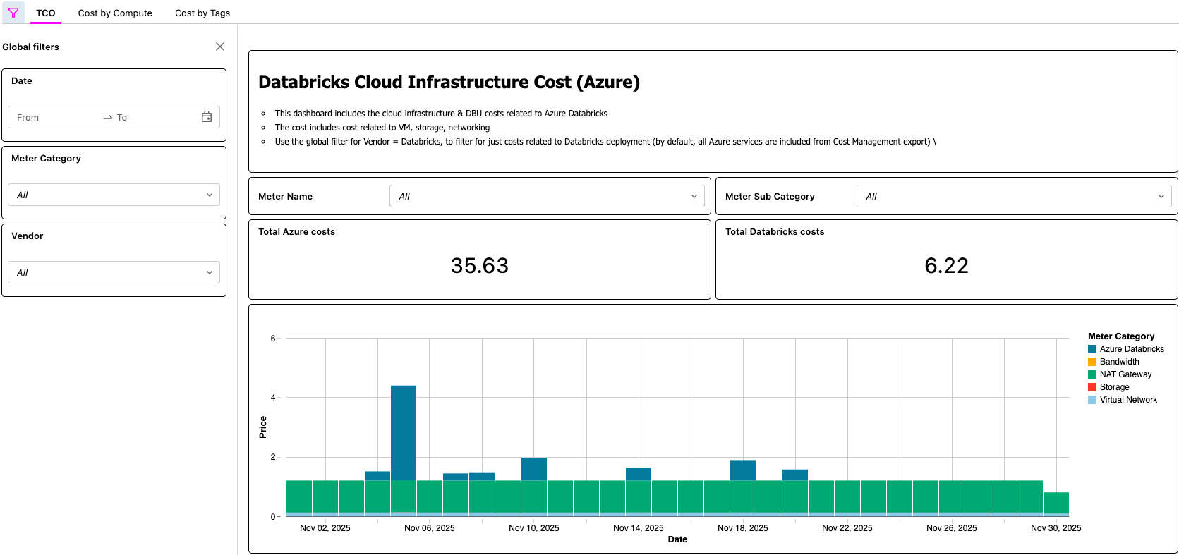 AI/BI-Dashboard zur Anzeige der Azure Databricks-TCO