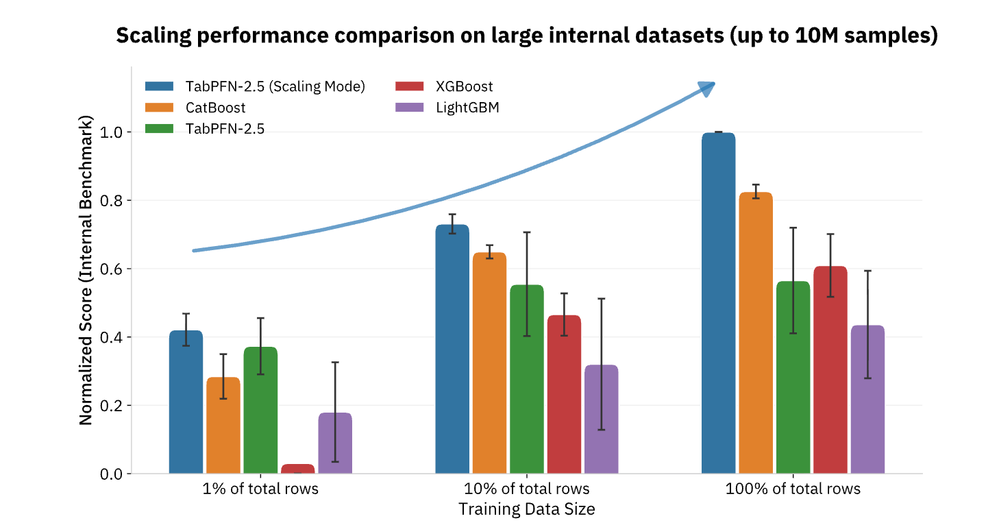 TabPFN unterstützt derzeit Datensätze mit bis zu 100.000 Zeilen und 2.000 Merkmalen, wobei Unternehmensversionen die Unterstützung auf 10 Millionen Zeilen erweitern und so die überwiegende Mehrheit der operativen ML-Anwendungsfälle im Einzelhandel, im Finanz- und Gesundheitswesen, in der Fertigung und in anderen Branchen abdecken. Für Unternehmen, die KI über die Erstellung von Inhalten und Natural Language Tasks hinaus operationalisieren möchten, stellen Foundation Models wie TabPFN das fehlende Teil dar, das die gleichen sprunghaften Produktivitätsverbesserungen für die strukturierten Daten und die Predictive Analytics bringt, die seit langem das Rückgrat der datengesteuerten Entscheidungsfindung bilden (Abbildung 3).