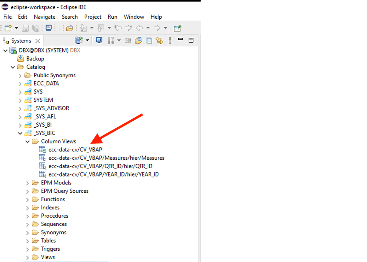 Ad esempio, questa vista di calcolo XS-classic è creata nello schema interno "_SYS_BIC".