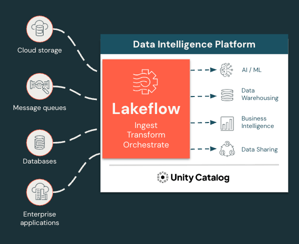 Per i nuovi utenti e gli utenti business, Lakeflow è molto intuitivo e facile da usare, con una semplice interfaccia punta e clicca e un'API per l'acquisizione dei dati tramite Lakeflow Connect.