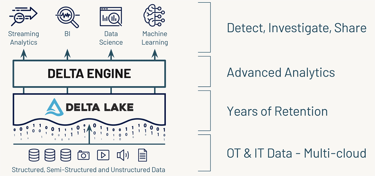 さらに、Databricks Lakehouse Platformでは、データをマルチペタバイト規模で保存、処理、分析することができるため、保存期間やルックバック期間を大幅に延長し、データサイエンスや機械学習による高度な脅威検出が可能になります。さらに、SIEMツールからクエリを実行し、セキュリティイベントを360度見渡すことができます。