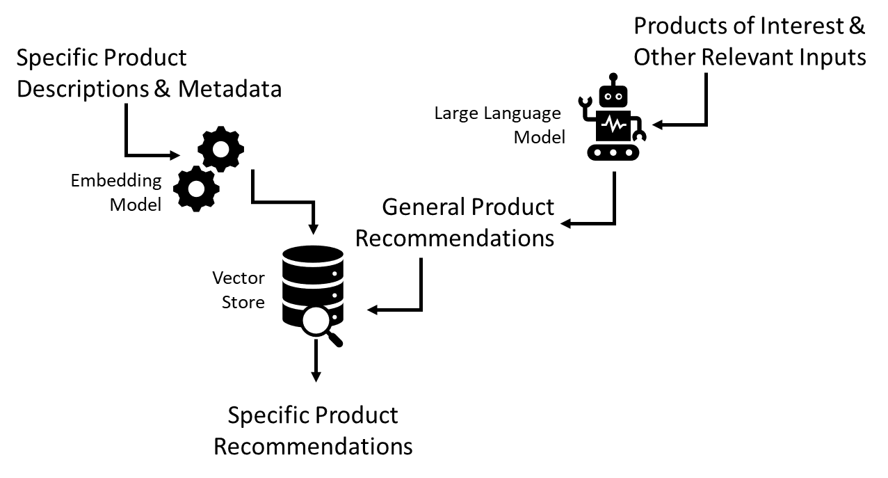Figure 3. Conceptual workflow for making specific product recommendations using an LLM