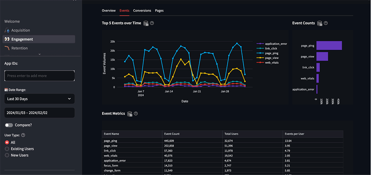 Figure 3. The Snowplow User and Marketing Data Application provides insights into user activity within a digital channel