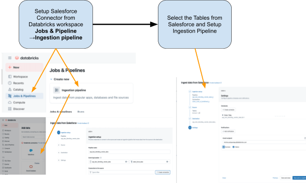 両方のソースが利用可能になったら、Lakeflow宣言型パイプライン を使用して、Salesforce および SAP のデータで ETL パイプラインを構築します。