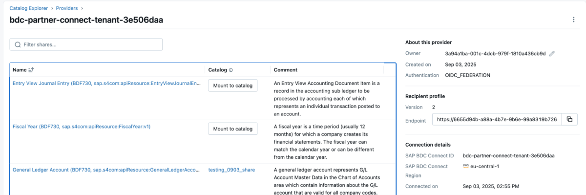 SAP BDC カタログ データ製品の共有