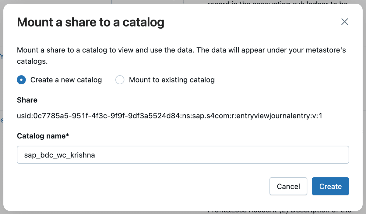 5: 次に、その共有をカタログにマウントして、新しいカタログを作成するか、既存のカタログにマウントすることができます。