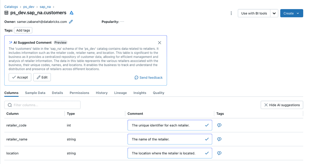 UCは、民主化されたダッシュボードと、システムテーブルから直接照会できるきめ細かなガバナンス情報の両方を備えたレイクハウスもニアリング機能を提供します。 ガバナンスの民主化により、運用の監視とコンプライアンスが技術者以外にも広がり、さまざまなチームがパイプラインのすべてを監視できるようになります。