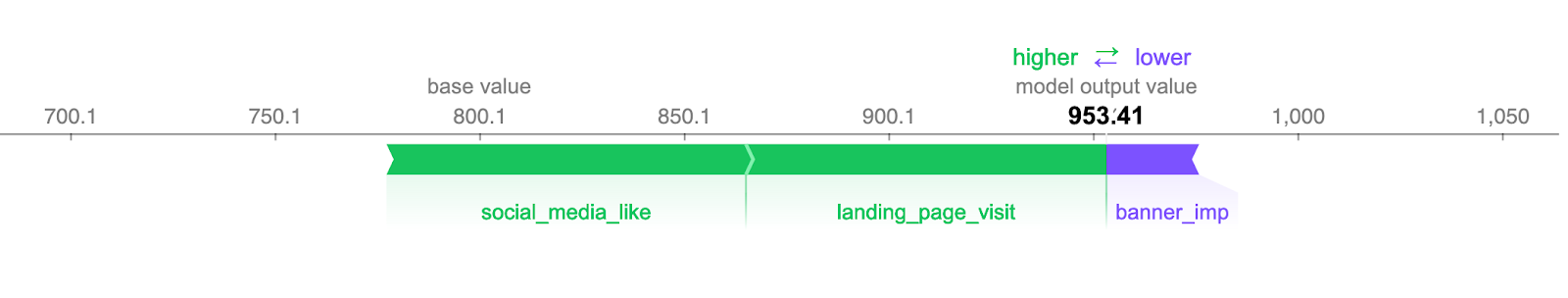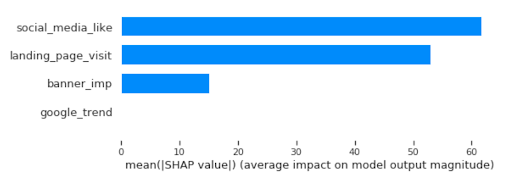2. SHAP 모델 인터프리터를 활용하여 모델 예측을 분해하고 특정 미디어 채널이 얼마나 많은 방문 트래픽을 유도했는지 정량화합니다.