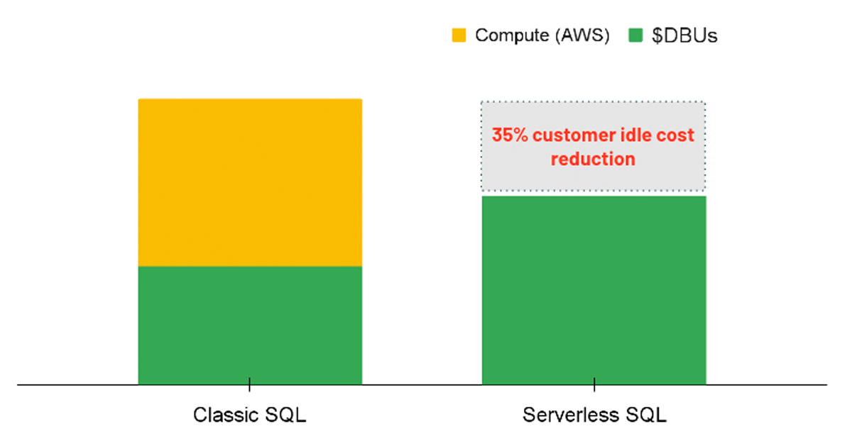 분석 워크로드의 경우, 서버리스 옵션이 활성화된 SQL 웨어하우스를 사용하는 것을 고려해 볼 수 있습니다. 서버리스 SQL을 사용하면 Databricks 플랫폼이 워크로드가 시작될 때마다 사용자에게 할당할 준비가 된 컴퓨팅 인스턴스 풀을 관리합니다. 따라서 기본 인스턴스의 비용은 DBU 컴퓨팅 비용과 기본 클라우드 컴퓨팅 비용의 두 가지 별도 요금이 아닌 Databricks에서 전적으로 관리합니다.