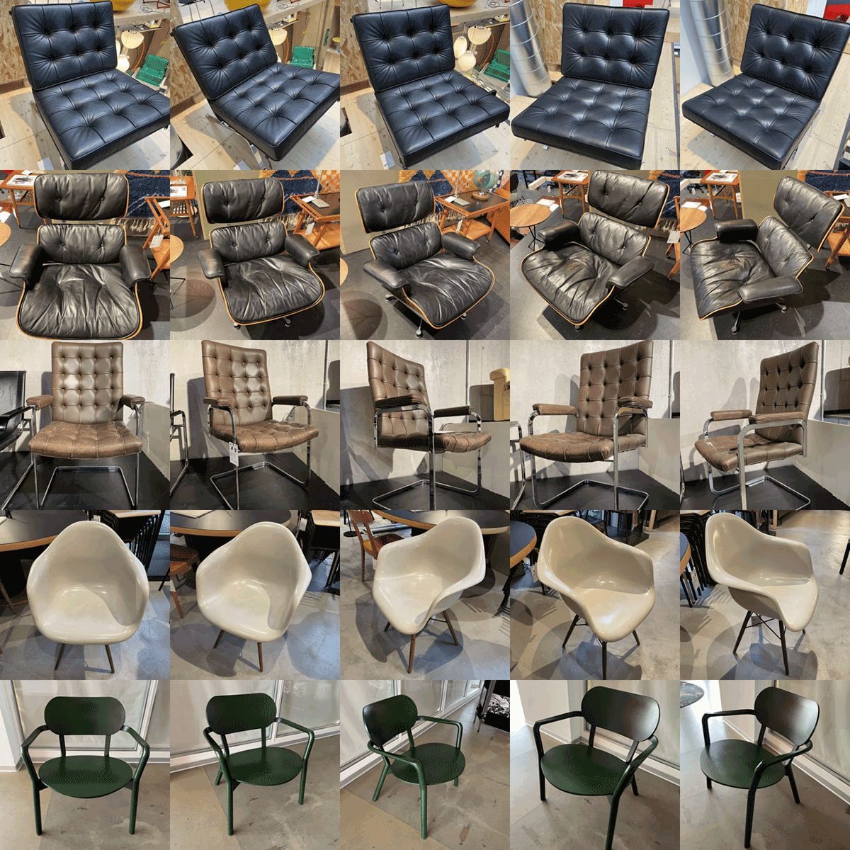그림 1. 샘플 가구 디자인 회사에서 제작한 의자의 핵심 디자인 미학을 대표하는 다섯 가지 의자 이미지