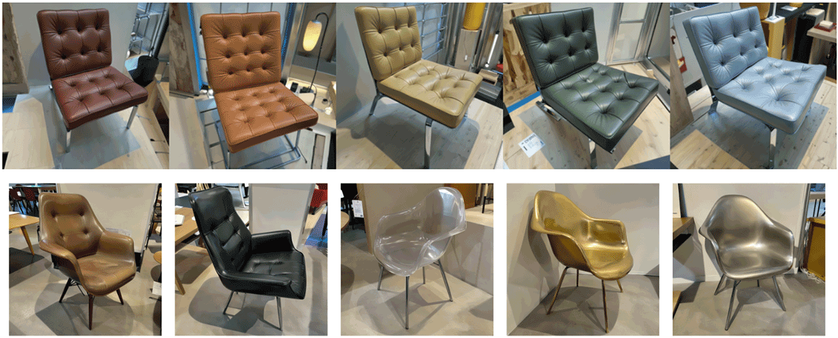 그림 4. 인식되는 의자 스타일에 대한 색상 및 소재 변형