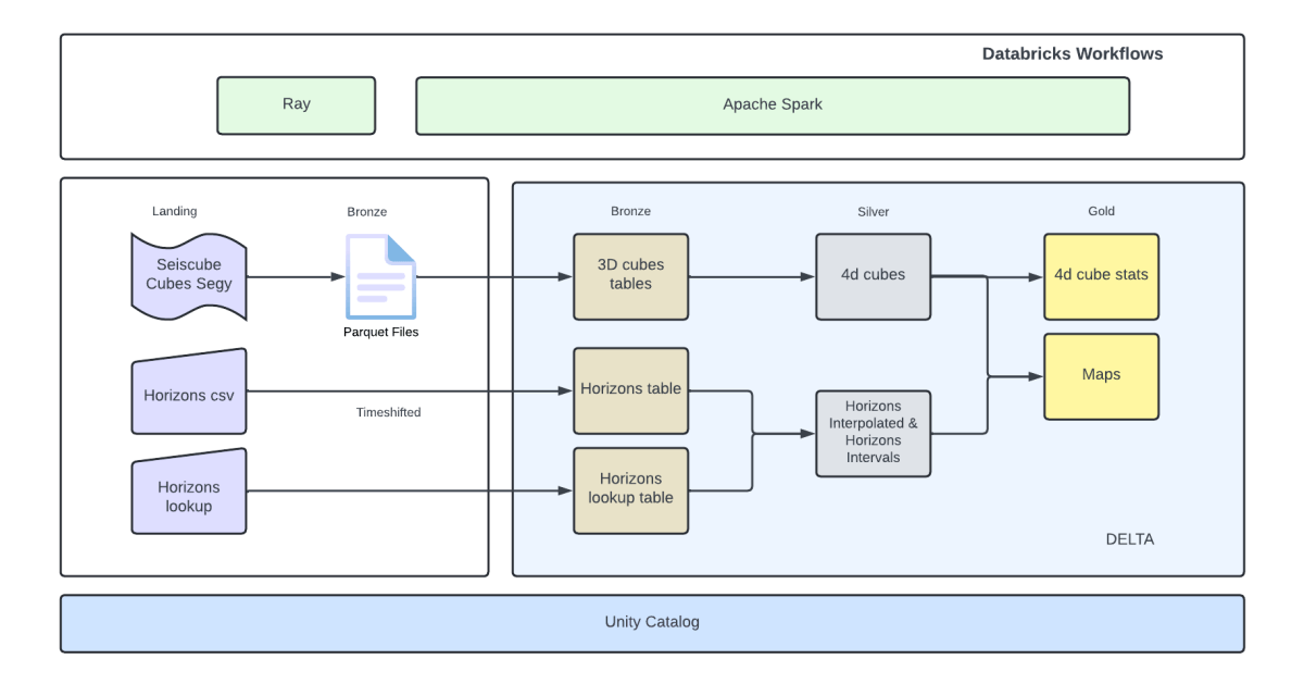 이러한 문제점들을 해결하기 위해, 우리는 파이프라인을 RayApache Spark™ 를 사용한 분산 솔루션으로 재구성하였고, 이는 Databricks 플랫폼에서 Unity 카탈로그에 의해 관리되었습니다. 이 접근법은 확장성, 복원력, 비용 효율성을 크게 향상시켰습니다.