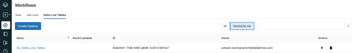 DLT 사용자 인터페이스에서 본 엔드 투 엔드 델타 라이브 테이블 파이프라인