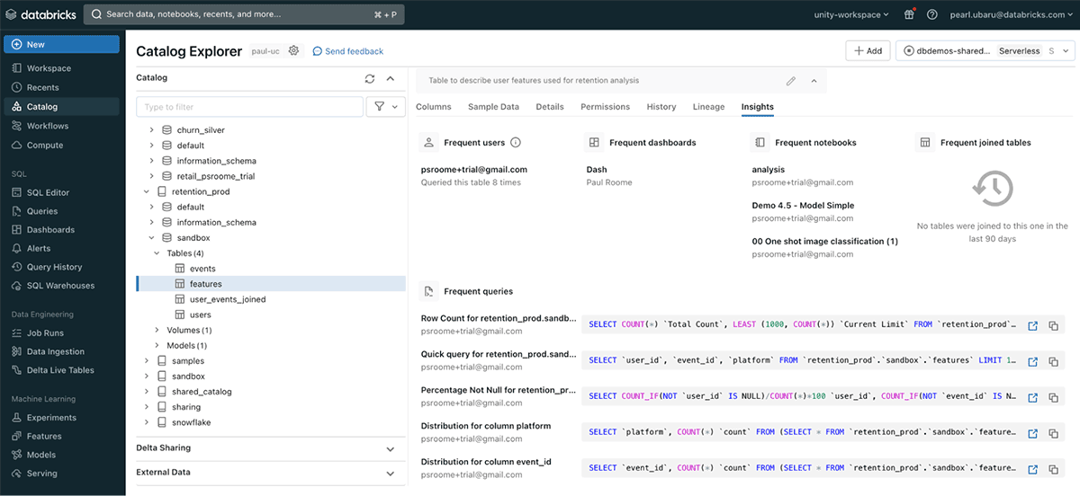 Metadata tagging insights: frequent users, notebooks, queries, joins, billing trends, and more