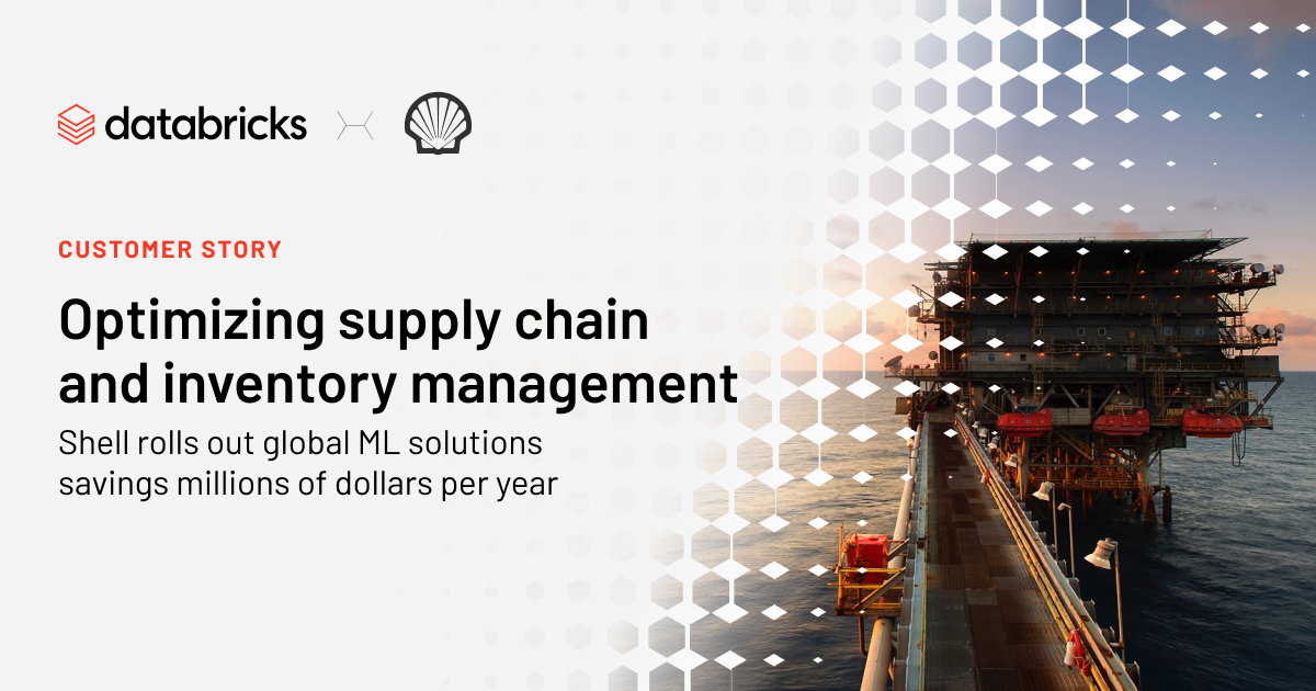 Find out how Shell leveraged Databricks and ML to save millions on inventory management. And learn how Shell’s data science team reduced inventory analysis and prediction time — for a 32x performance gain.